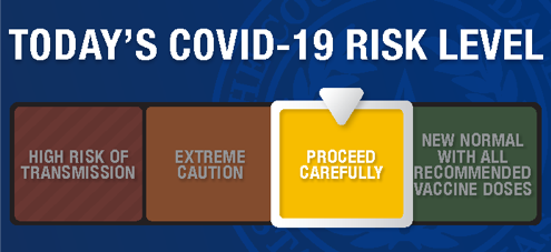 オースティン同様CDCが定める地域レベル指標に切り替え。現在レベル「中」。