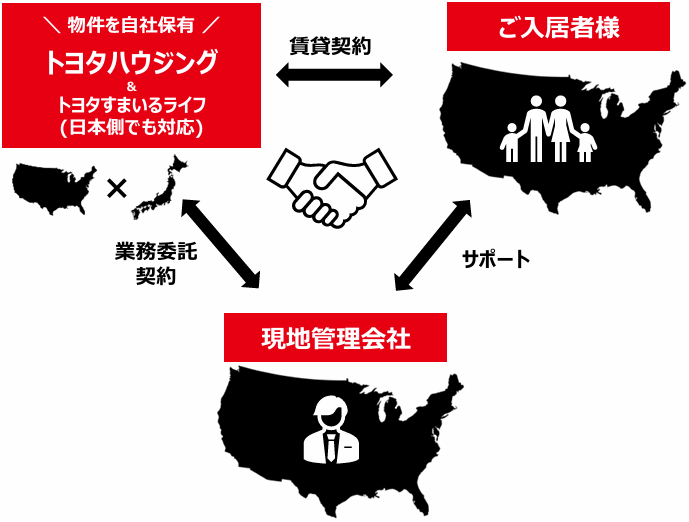 そんな中、日本から米国に駐在される方の困りごとの一つに、住宅の確保が挙げられます。その困りごとを解決するのがトヨタハウジングの事業目的です。