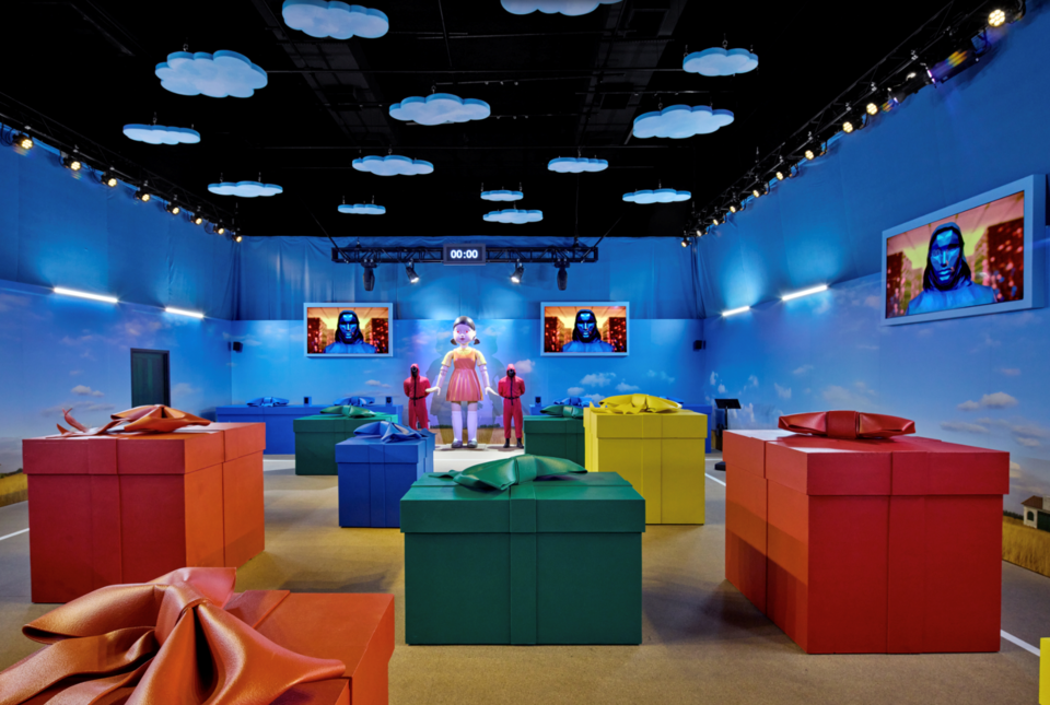 チケット制の目玉コンテンツとして、『Stranger Things: Escape the Dark』ではホーキンスの廃墟を探索しながら3人の行方不明者を捜索するストーリー仕立ての体験が用意されています。『Squid Game: Survive the Trials』では、「だるまさんがころんだ(Red Light, Green Light)」など複数ゲームを模したチャレンジに挑戦し、フロントマンとの対峙などシリーズを想起させる緊張感のあるゲームプレイを楽しめます。
