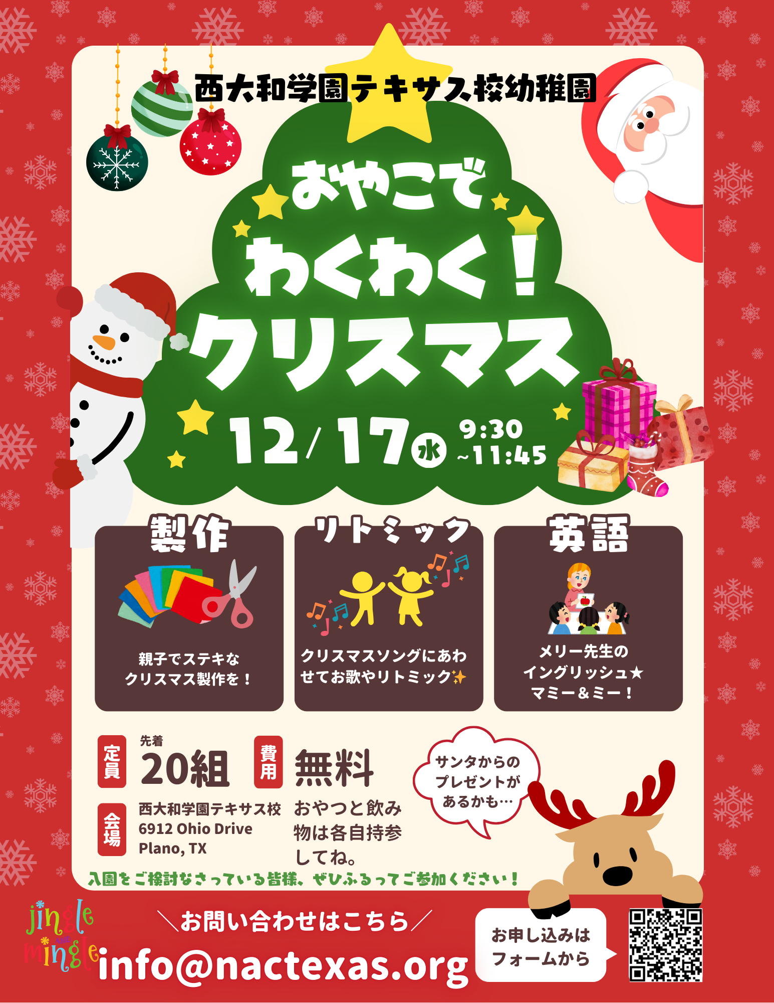 ・親子で楽しむクリスマス製作・リトミック・英語体験!