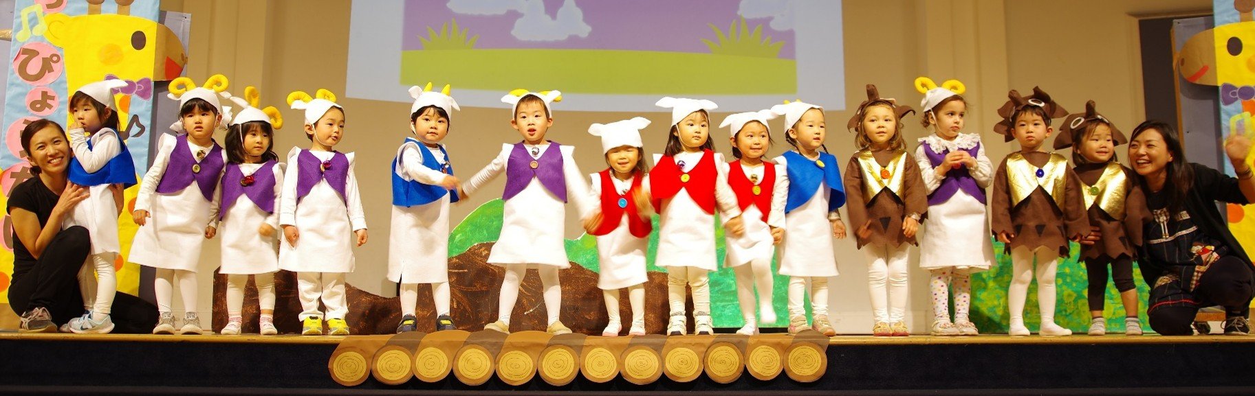 幼稚園では、日本語教育を土台に日英バイリンガルを育み、音楽・運動・四季の行事を通して豊かな感性と健やかな心身を育成。
