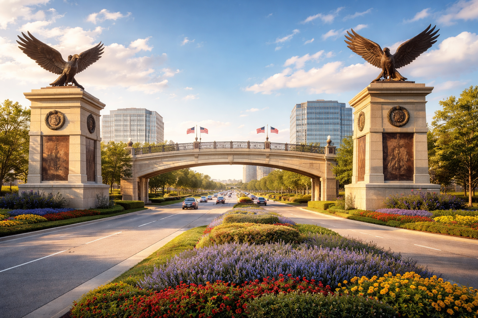 レガシー・ペデストリアンブリッジのモニュメントは、レガシー・ビジネスパークの象徴的な入口に位置し、ペローのビジョンとプレイノの成長ストーリーを訪問者や通勤者に伝えるランドマークとなります。