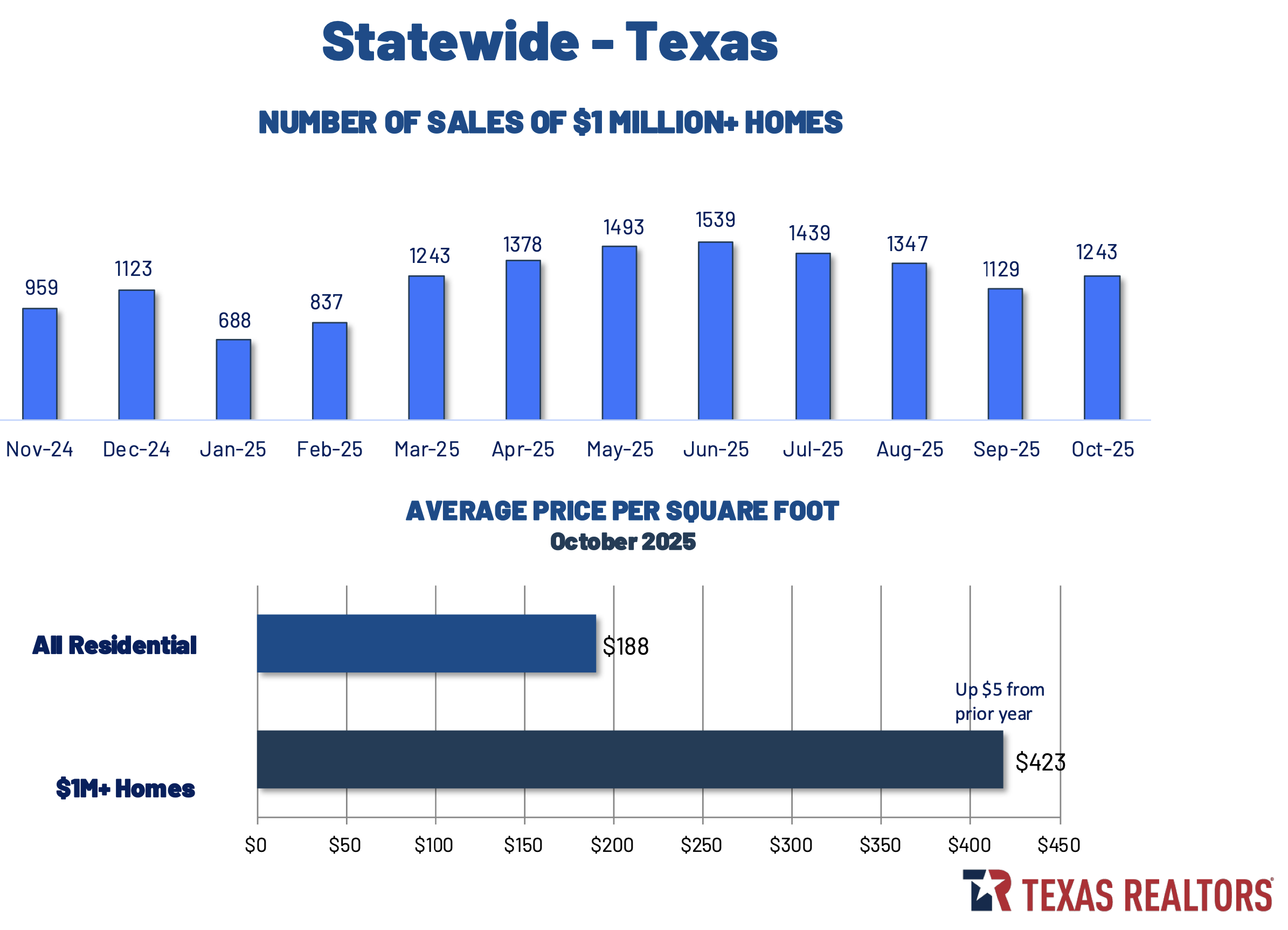 テキサス全体のミリオン・ドル住宅は、州全住宅のごく一部ながら、売上金額ベースでは「小さくて強い」セグメントとして位置付けられています。