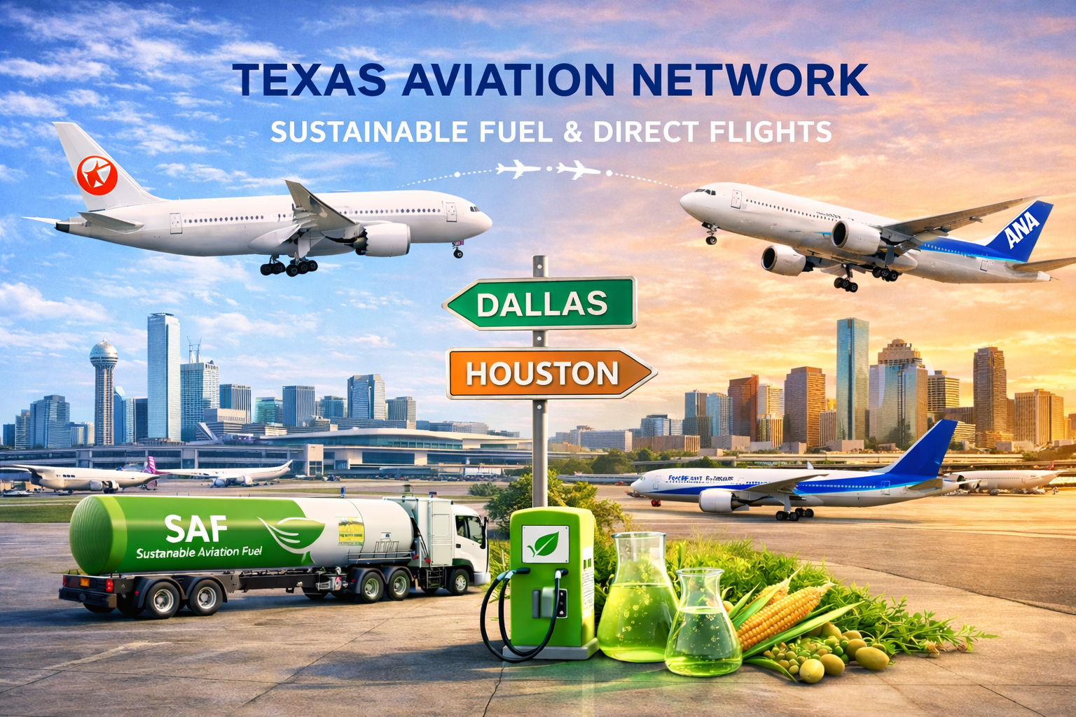 今後、SAF供給量の拡大とコスト低減が進めば、ダラスとヒューストンを起点とするテキサスの航空ネットワークは、「環境配慮型の輸送」と「高いビジネス利便性」を両立するルートとして、ますます重要性を増していくと考えられます。