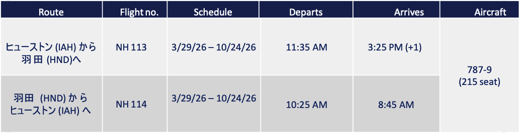全日空(ANA)より2026年3月29日から2026年10月24日までの夏ダイヤスケジュールのご案内