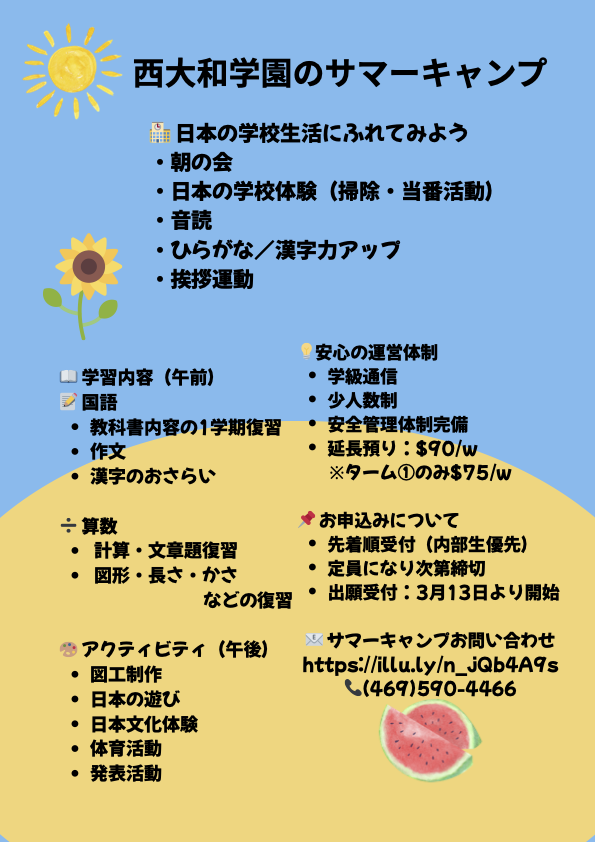 補習校サマーキャンプの詳細はこちら。