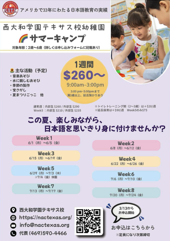/※幼稚園・小学生対象の日本語サマーキャンプの募集詳細は、ページ下部でご案内しています。