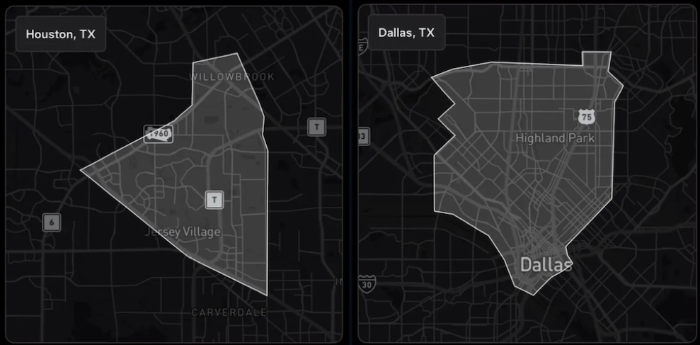 /テスラは、ダラスとヒューストンでロボタクシーサービスを開始しました。ダラスでは、最新の自動運転ソフトを搭載したModel Yが使われ、中心部からノースウェスト・ハイウェイまでの一部エリアで運行しています。